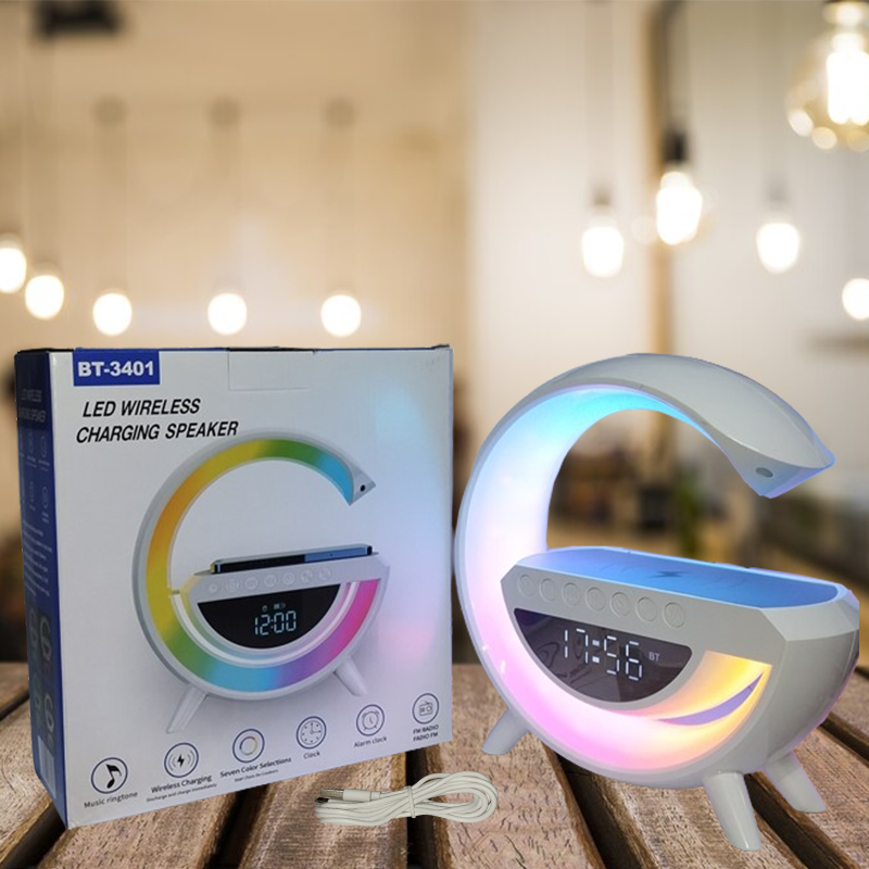 Transform your everyday routine with the BT-3401, a 7-in-1 multifunctional device that blends technology, style, and convenience in one compact design. Perfect for your bedroom, office, or living room, this smart gadget elevates your lifestyle with wireless charging, immersive sound, mood lighting, and a digital alarm clock — all in one.
